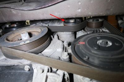 Снятие старого ремня и роликов: